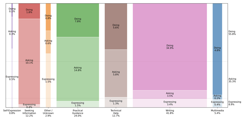 The vast majority of AI conversations fall into the asking or doing categories.
